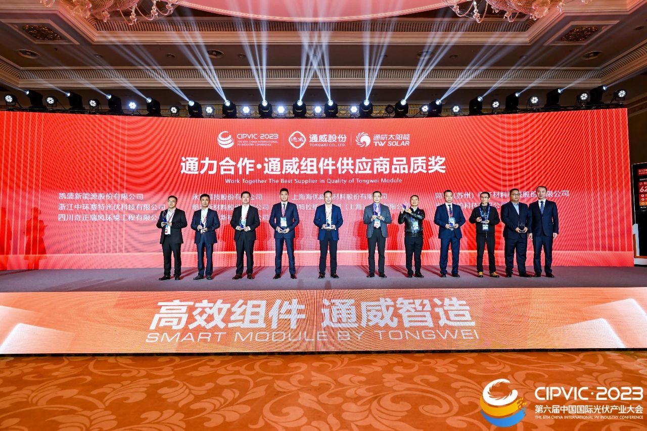 大会为长期以来支持、助力通威组件发展的合作伙伴颁奖,42家客户分别获得“同心共筑——通威组件供应商合作奖”“和衷共济——通威组件合作伙伴价值奖”“通力合作——通威组件供应商品质奖”“征途与共——通威组件全球合作伙伴价值奖”殊荣。