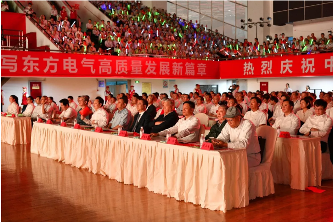 东方电气集团党组书记、董事长邹磊致辞,表达了对祖国母亲的深情祝福,回顾了东方电气和新中国攻坚克难、共同成长的历程,表达了东方电气人产业报国、制造强国的壮志和情怀,同时对所有出席嘉宾表示热烈欢迎。祝东方电气全体干部职工及家属国庆快乐,阖家幸福!祝愿东方电气的明天更美好!祝福伟大的祖国繁荣昌盛,中华儿女幸福安康!