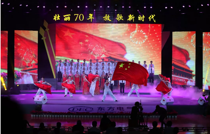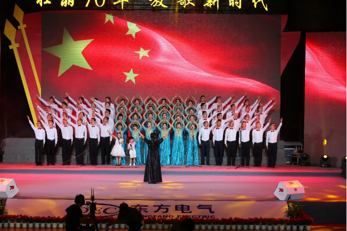 9月27日晚,东方电气集团“壮丽70年,放歌新时代”职工歌咏展演活动在德阳市体育馆隆重举行。演出现场华丽的舞台、飘扬的五星红旗、精美展板和横幅,营造出一片红色海洋。通过现场观看和手机直播,海内外东方电气人欢聚一堂,气氛热烈,深情回望初心,礼赞新中国,放歌新时代,向中华人民共和国成立70周年献礼。