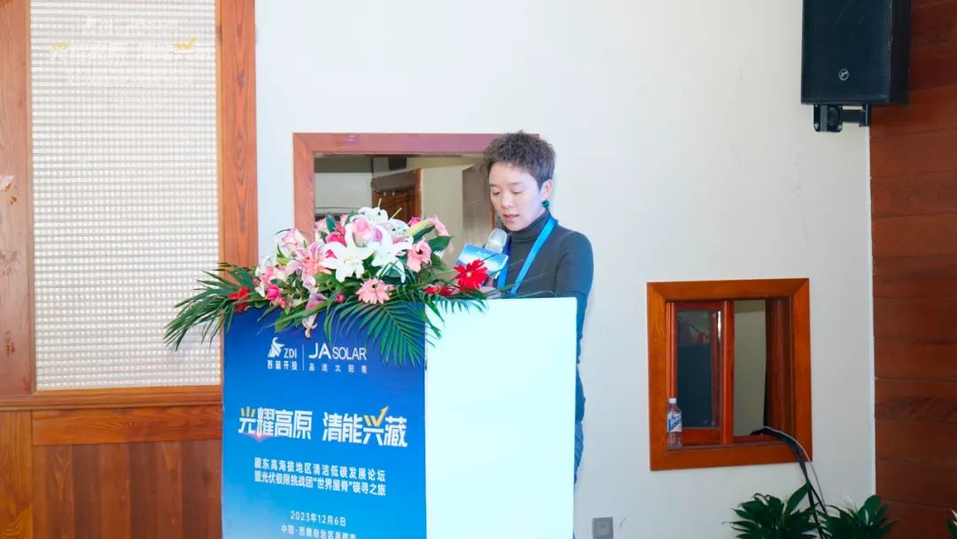 彭澎秘书长表示,青藏高原与清洁能源更般配,西藏受气候变化影响较大,生态极为脆弱,晶澳科技光伏组件能够安装在雪域高原,为西藏提供清洁能源,对应对气候变化起到重要作用。