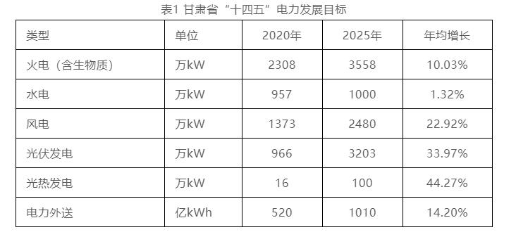 针对新能源发展目标等,《甘肃省“十四五”能源发展规划》中也进行了明确。详见表1和图4。