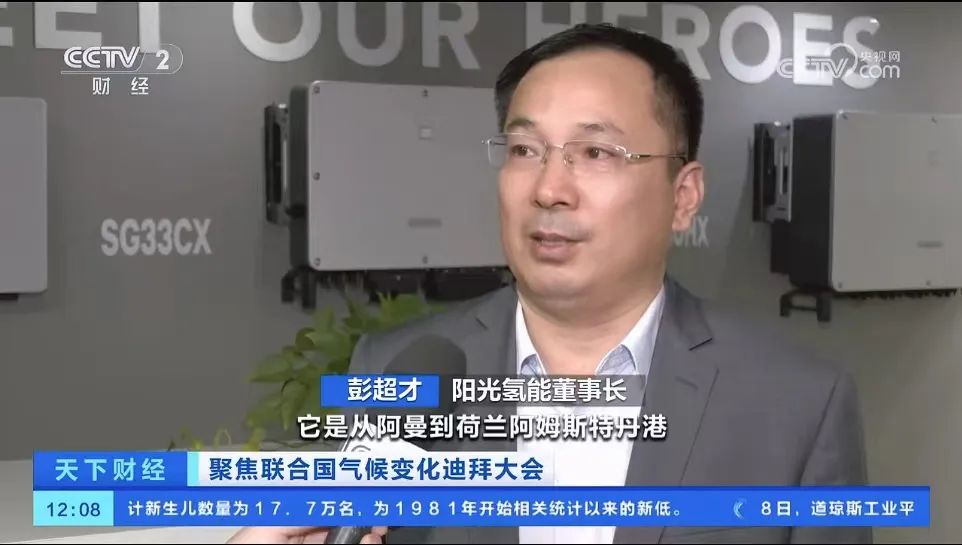 大会现场,阳光电源副总裁、阳光氢能董事长彭超才接受中央电视台等媒体采访。他指出,COP28 是全球气候治理的里程碑,能源转型相关的宣言、合作是此次大会最受关注的成果。全球氢能发展的共识,全球氢认证标准的签署,都将促进全球低碳氢贸易,助力应对全球气候极端变化的风险。彭超才表示,阿曼绿色液氢走廊,将把阿曼生产的绿氢出口至荷兰阿姆斯特丹港口,输送至欧洲,这个开放式液化设施还将使阿曼政府能够探索向全球其他市场出口氢气,中东也将成为短时期内全球最具氢能发展潜力的地区。