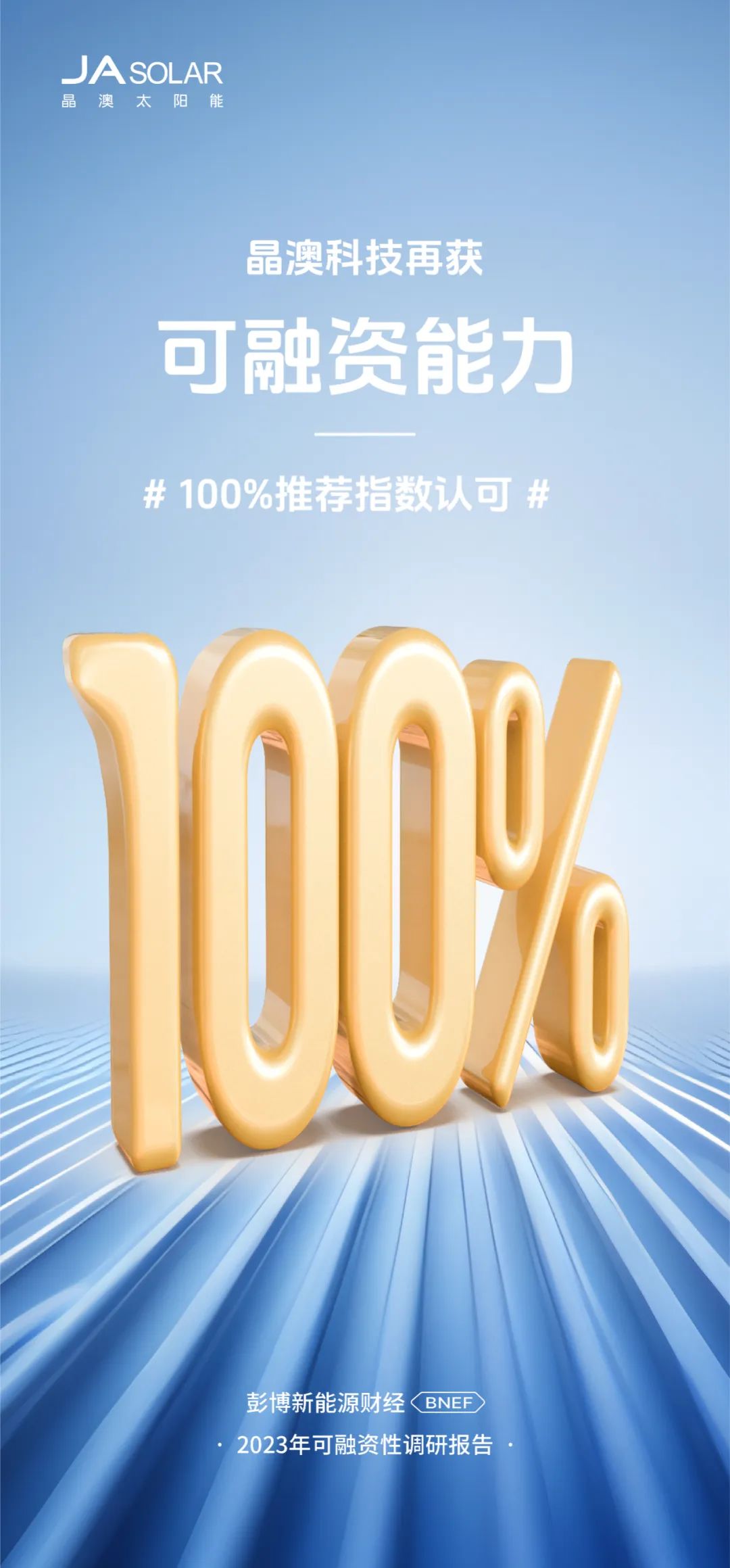 实力彰显!晶澳科技获得2023年BNEF可融资能力100%推荐指数