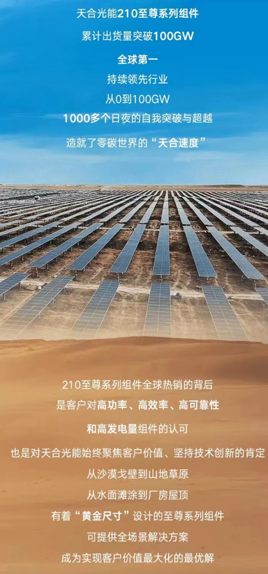 首屈一指!3年突破100GW!天合光能210至尊组件出货量全球第一
