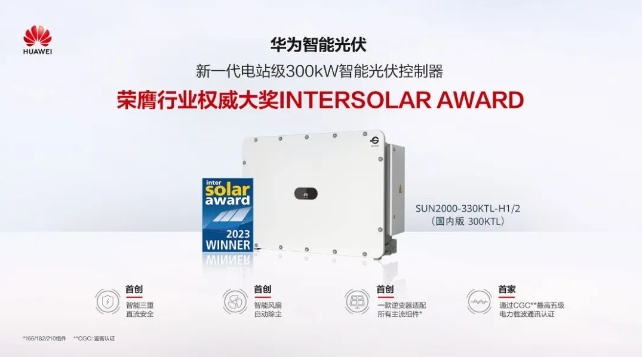 在本次盛会上,华为智能光伏控制器SUN2000-300KTL-H0成功入选2023年度光伏行业创新成果,成为促进绿色低碳、提质增效、节能降耗等目标的光伏产品领域内的重大创新技术。