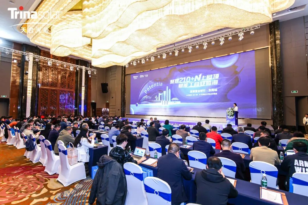 12月19日,天合光能“聚焦210+N上屋顶,赋能工商业蓝海——至尊堂全球行·东莞站”成功举办。100+产业链上下游嘉宾共聚一堂,共话工商业光储高质量发展。天合光能携新一代分布式产品亮相全场,与广大协会领导、行业专家、企业代表、EPC经销商、投融资机构等开展深度交流。