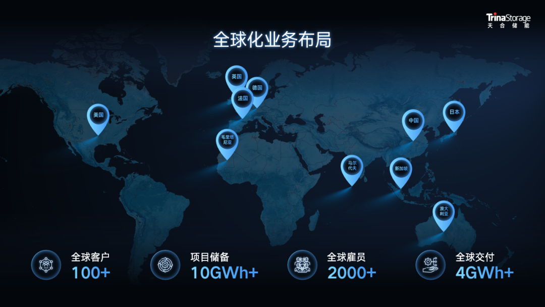在国内,天合储能已于安徽滁州、江苏盐城多地布局基地,打造智能制造超级工厂,保障储能产品的全面量产及高效交付。在海外,天合储能足迹遍布全球,业务覆盖亚、美、欧多个国家和区域,全球交付项目累计超4GWh,储备项目超过10GWh。
