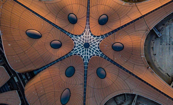 北京大兴国际机场,宛如一只展翅欲飞的“金凤凰”。