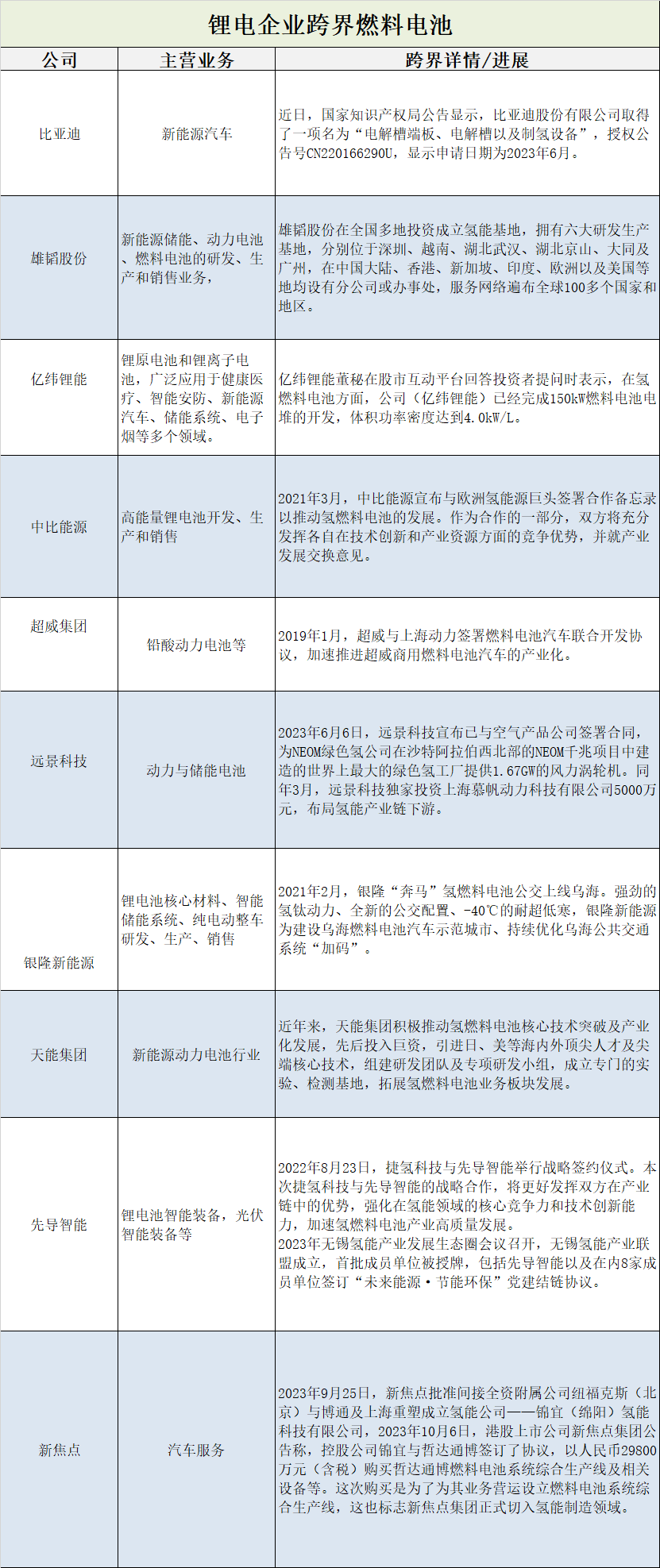 近年来,跨界燃料电池产业的公司不在少数,其中包括了一众锂电池大佬: