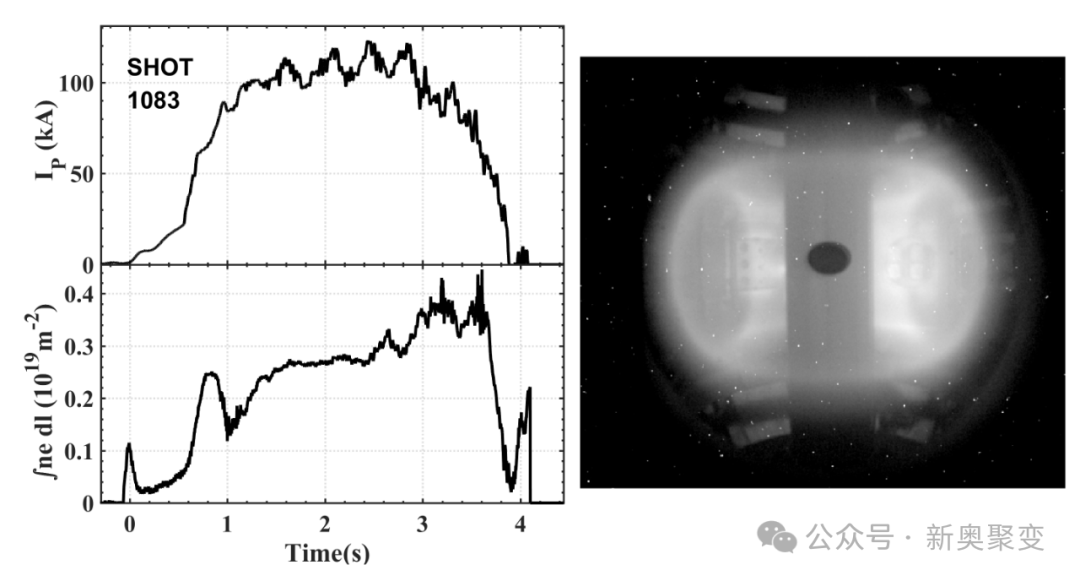 玄龙-50U启动后,获得了重复稳定的放电,等离子体电流超过100kA,等离子体平顶维持2秒。