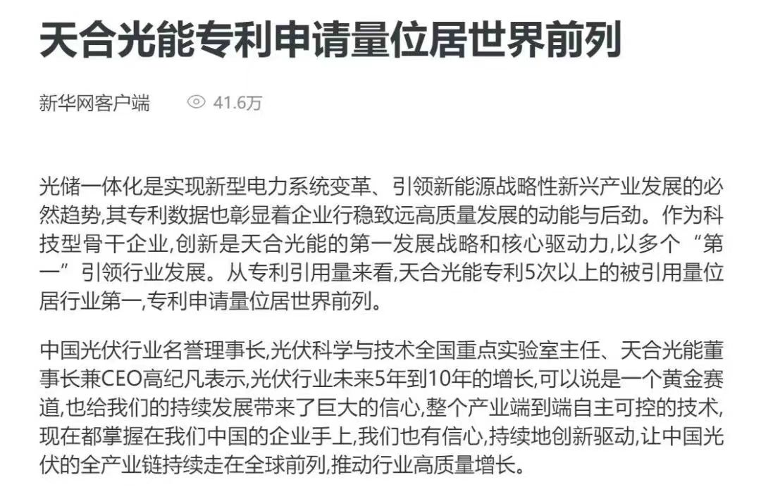 专利申请位居世界前列!天合光能获央视、新华社等中央主流媒体相继点赞
