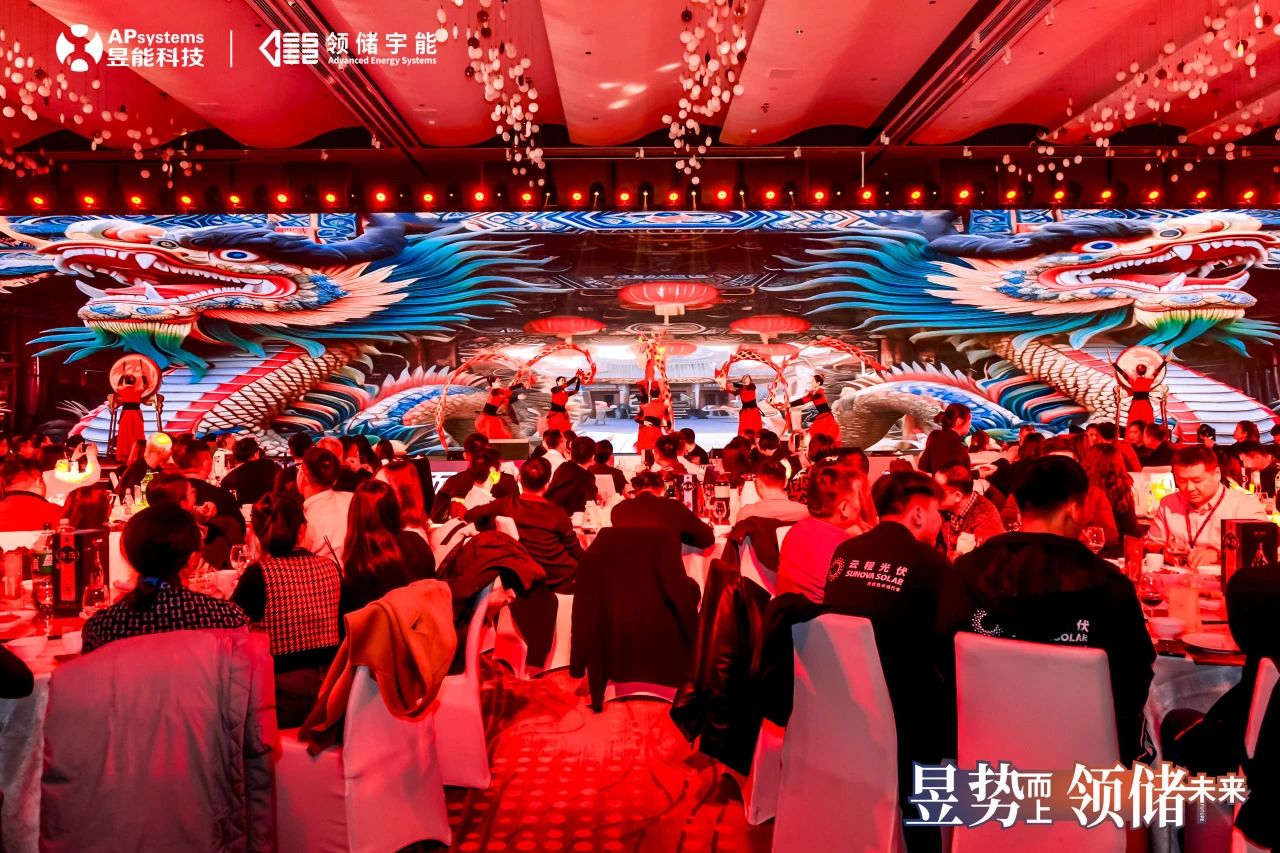 活动现场还举行了盛大的招待晚宴——领储宇能之夜。璀璨灯光下,高朋满座,刘总为晚宴致祝酒词,共同庆祝新产品的成功发布,这标志着昱能科技及领储宇能在产品研发创新、储能业务布局迈出了重要一步。未来,公司将与每一位合作伙伴精诚合作、互利共赢,共同谱写产业发展的新篇章。