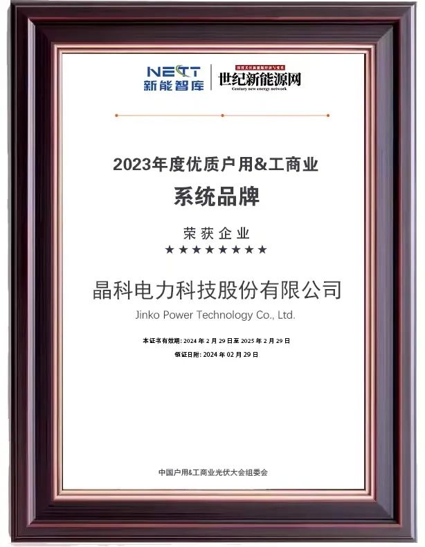 奖项的设立旨在鼓励太阳能光伏企业的技术创新和品牌建设,表彰对产业持续发展作出重要贡献的优秀企业。此次参与评选的企业都是行业内实力雄厚的光伏品牌,经过多轮的初审、复审甄选,晶科晶能宝在众多优秀企业中脱颖而出,荣获“2023年度优质户用&工商业系统品牌奖” 、“2023年度优质户用&工商业创新产品奖”的荣誉,这是对晶科晶能宝在户用光伏领域的技术创新、品牌建设、优质服务以及卓越表现的充分肯定。