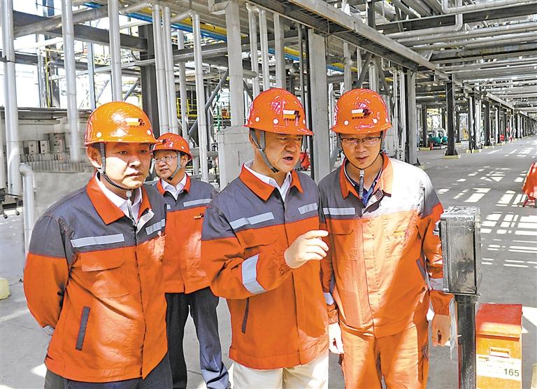 党彦宝(前排中)在宝丰能源生产一线调研。 (图片由受访者提供)