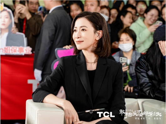 当天,著名演员佘诗曼空降活动现场。作为TCL创意感动生活频道主播,“Man姐”佘诗曼不但见证整场事件,更是带着自己“三料视后”的好彩头与TCL员工分享好运。