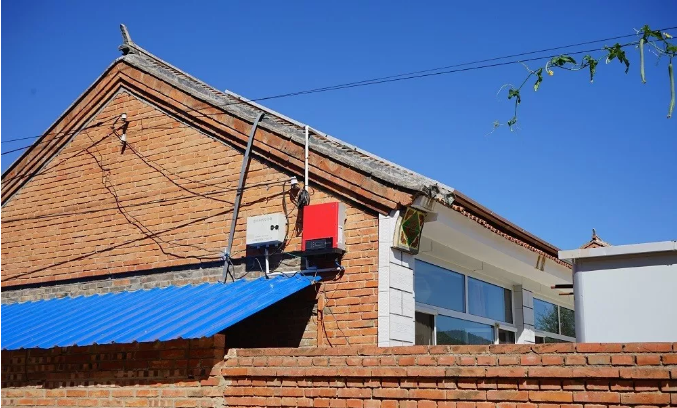 除了铺满屋顶蓝色的光伏板,红色的光伏逆变器也显得格外耀眼,它们是来自固德威的智能光伏逆变器产品,“扶贫新模式”不仅要保证贫困户的收益,也要保障三方安装商的收益,所以逆变器的选择十分关键,作为整个光伏系统的心脏,它的稳定和高效是整个投资收益的保障。