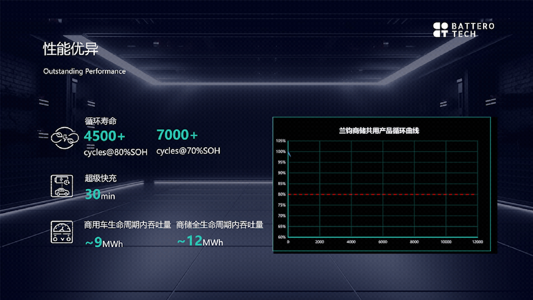 接下来,兰钧新能源将继续立足于电动重卡的续航、成本等痛点,在现有7000次循环的基础上,进一步提升至10000次的超长循环寿命。同时持续提升电芯能量密度,为商用车预留出更多的载货重量,进一步降低运营成本。