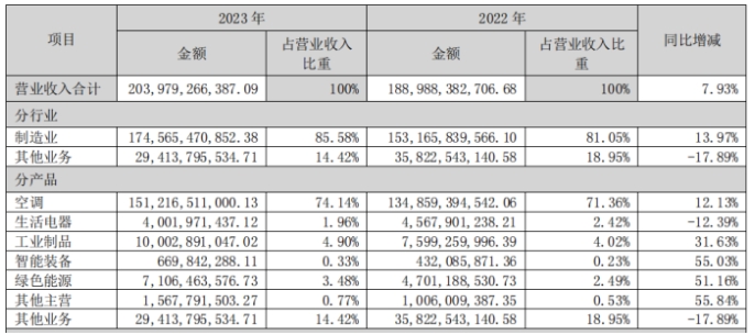 2023年格力电器营收为2039.8亿,同比增长7.93%。