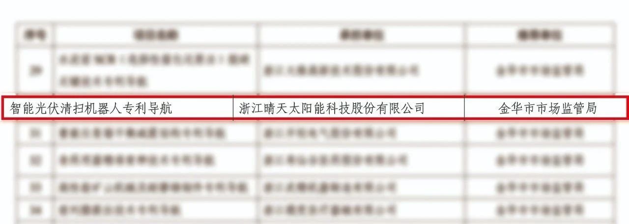 近日,浙江省市场监督管理局公布2024年度浙江省专利导航项目立项名单,浙江晴天太阳能科技股份有限公司“智能光伏清扫机器人专利导航”项目脱颖而出,成功立项。
