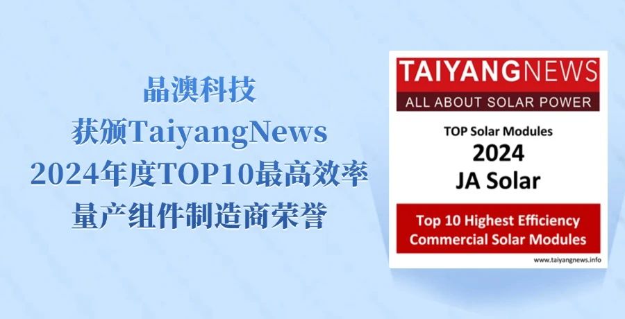 TOP 10最高量产!晶澳科技获TaiyangNews2024年度卓越勋章