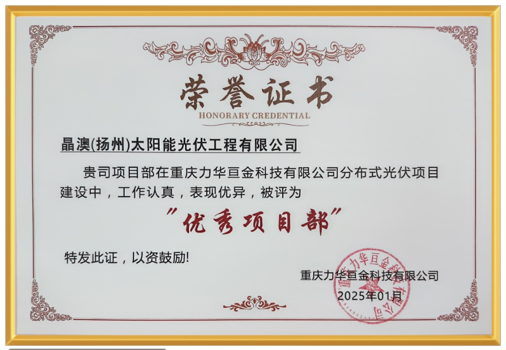 晶澳智慧能源从前期项目咨询、现场勘测、方案设计、工程总包到项目提前并网,都展示出了专业的技术水平和施工实力。无论是企业团队还是个人成员,都以高度的责任感和专业素养,确保了每一个环节的高效执行,大大缩短了合同工期。凭借出色的表现和卓越的成果,晶澳智慧能源赢得了重庆力华亘金科技有限公司的高度赞誉与充分认可,进一步巩固了双方的合作关系。