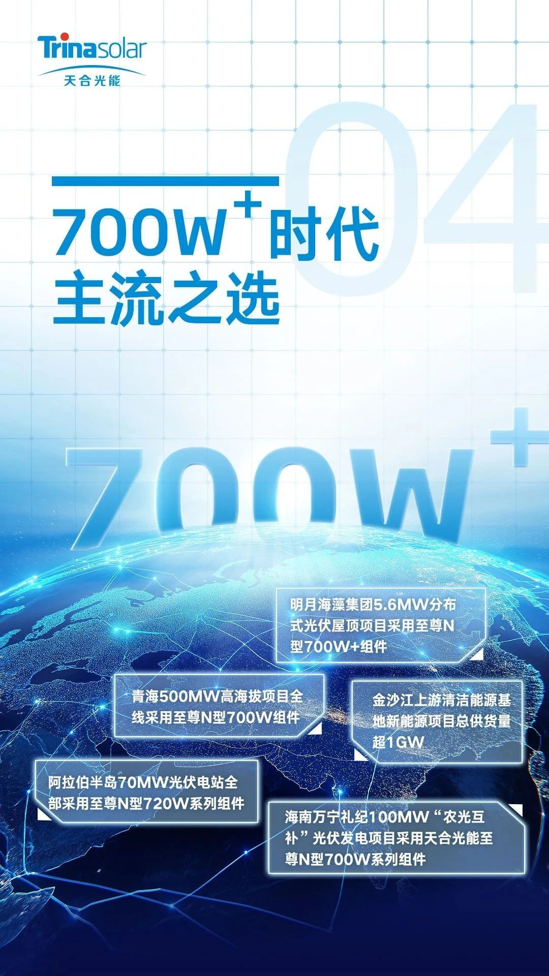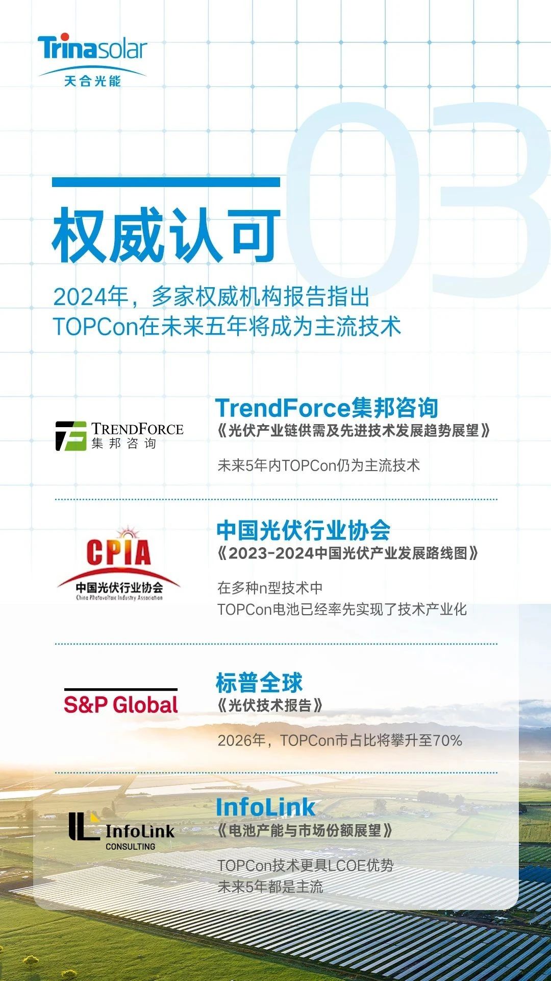 TOPCon未来五年的主流地位得到多家权威机构认可。天合光能至尊N型组件的广泛应用印证了TOPCon行业主流之选的地位,更标志着光伏行业正式迈入“700W+时代”。