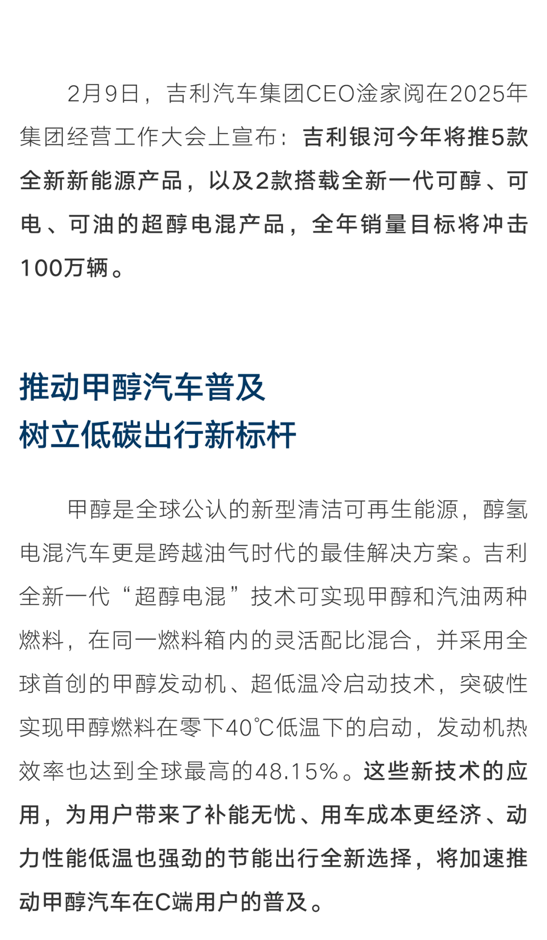 “七剑”冲百万 !吉利银河今年将推5款新车与2款超醇电混产品