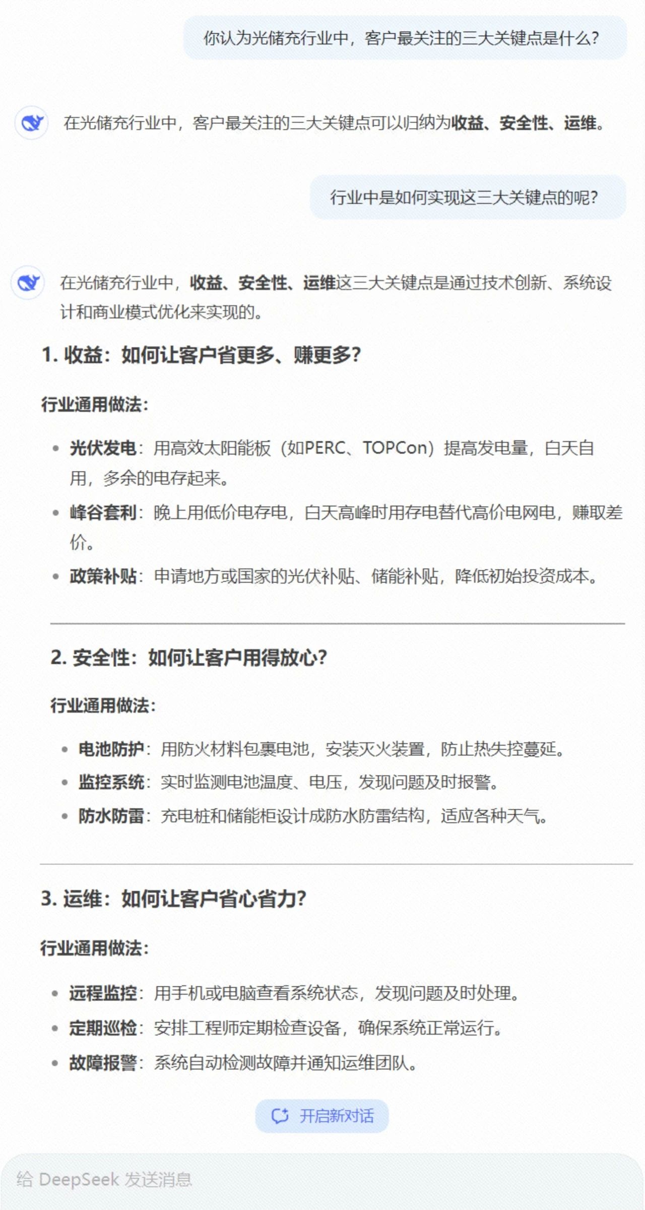 近日,DeepSeek 在科技圈乃至大众视野里掀起了一阵热潮,其强大的智能交互与丰富知识,令人惊叹,相关话题讨论度居高不下。随着全球能源转型的加速,光储充一体化解决方案成为新能源领域的重要发展方向,那么,在DeepSeek 这个“智能大脑” 眼中,光储充解决方案需要哪些关键要素?