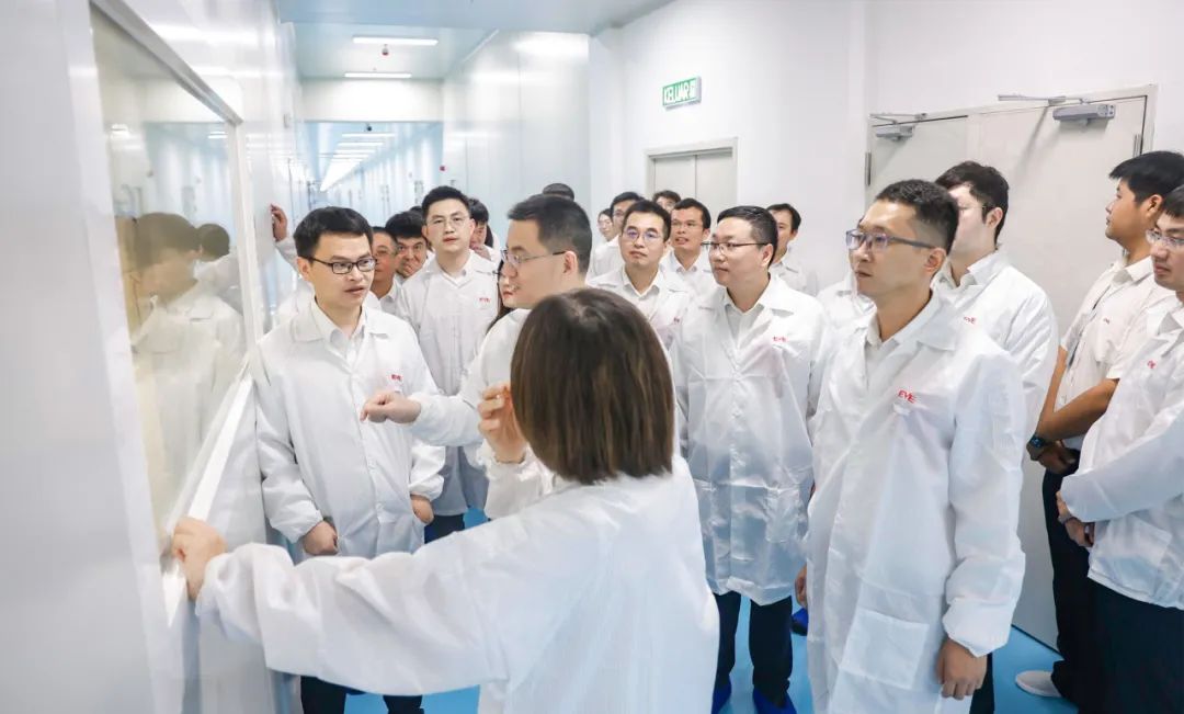 随后,何盈深向五十三工厂副总经理胡云生授予工厂牌匾,副总裁尚迎梅带领与会嘉宾参观产线。