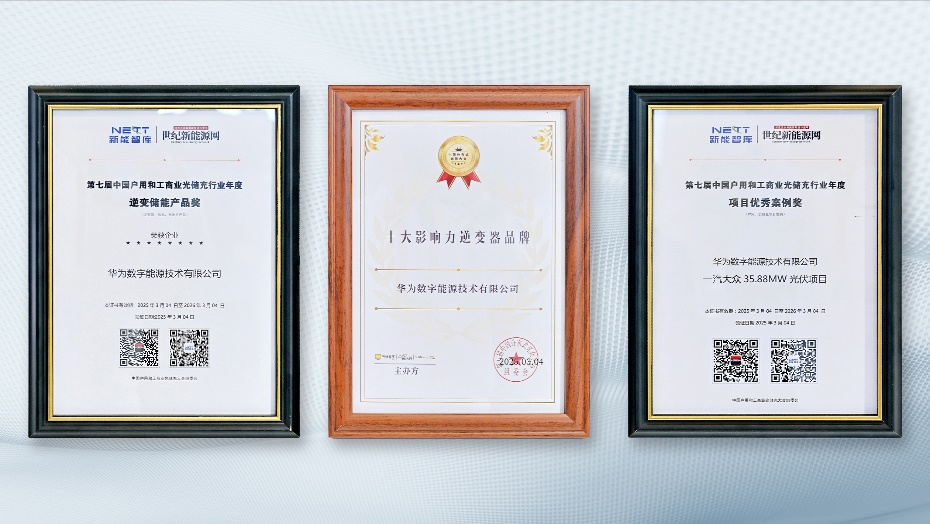 与此同时,华为荣膺 “十大影响力逆变器品牌”、 “2024户用和工商业年度逆变储能产品奖”以及“2024户用和工商业年度项目优秀案例奖”三大奖项,彰显了行业硬实力。