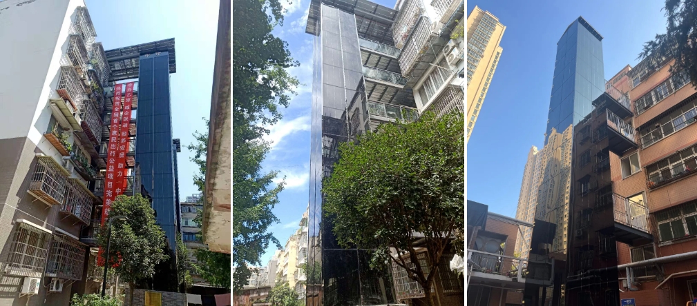 四川江油市及河南南阳市老小区加装电梯的过程中,碲化镉发电玻璃应用于电梯井道或顶部材料。