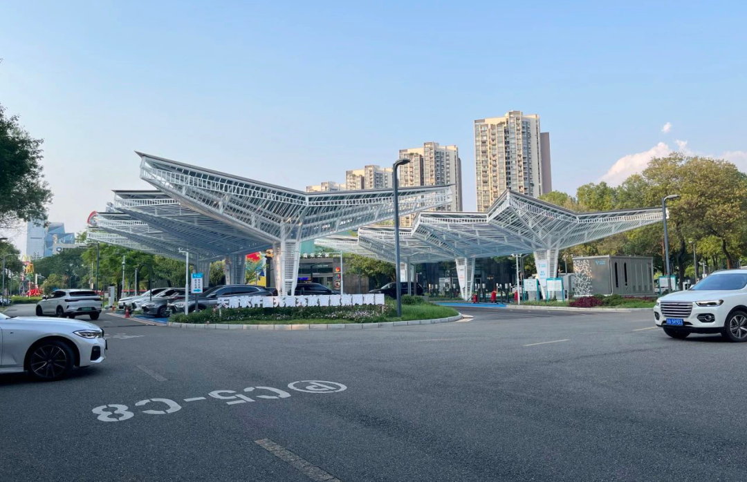 在成都天府软件园建设的光储充放一体化智慧微网项目,采用碲化镉发电玻璃作为车棚顶。