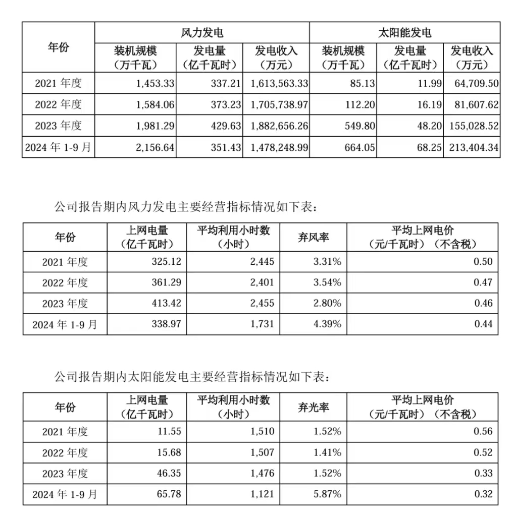 华润新能源招股说明书显示,截至2024年9月末,其主要资产已覆盖国内30个省(自治区、直辖市、特别行政区)。公司控股发电项目并网装机容量达2820.69万千瓦,其中风力发电项目2156.64万千瓦,太阳能发电项目664.05万千瓦。