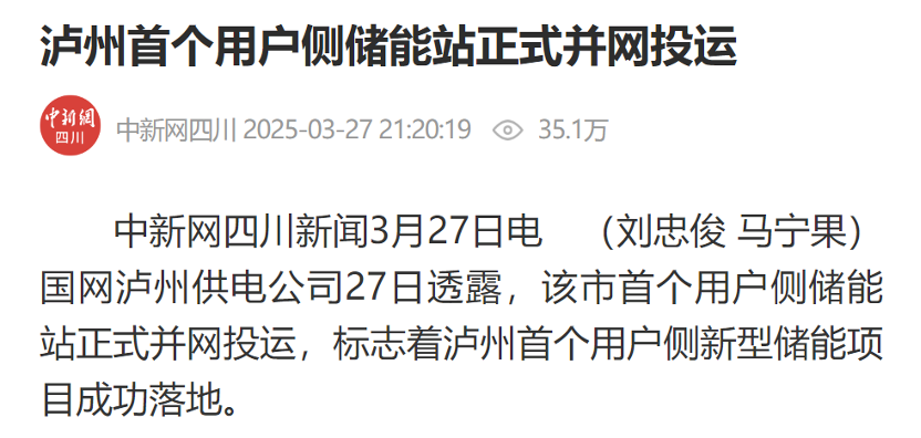“益企储”出鞘!远景助力泸州首个用户侧新型储能项目成功落地