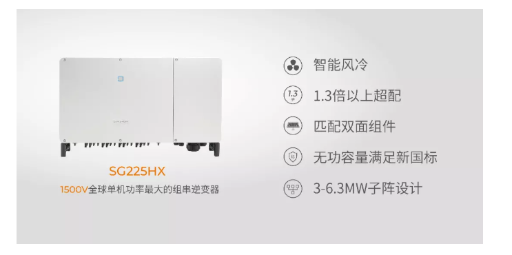 阳光电源基于22年逆变器行业经验积累,针对平价竞价项目,推出了全球单机功率最大1500V组串逆变器SG225HX,最大化地降低光伏电站度电成本,以技术创新升级为平价竞价项目再添助力。
