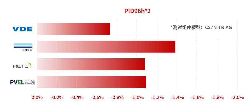 Evolution Labs(简称Kwia PVEL)在其最新的2024年度产品认证计划中授予阿特斯组件2024年度组件可靠性计分卡“Top Performer”称号, 2倍加严PID测试衰减低于PVEL≤2%衰减要求,展现出出色的稳定性与耐久性。另外,在美国可再生能源测试中心(RETC)、挪威船级社(DNV)、德国电气工程师协会(VDE)等权威机构的测试或评估中,阿特斯组件同样表现出行业领先的抗PID性能。