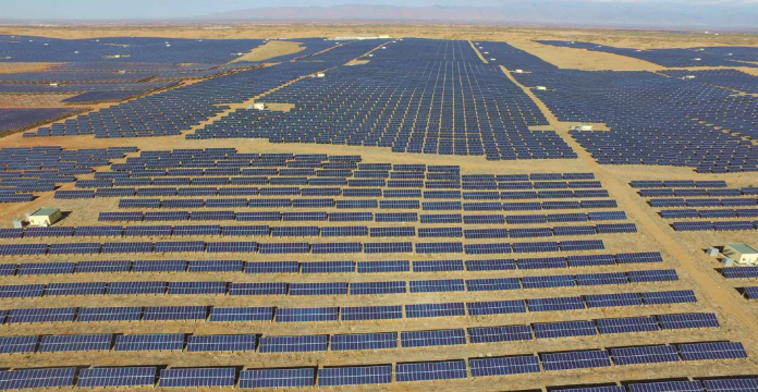 现在库布齐沙漠有三分之一的面积已经从荒漠变成绿洲。在沙漠腹地,一座占地五万亩的光伏电站格外显眼。