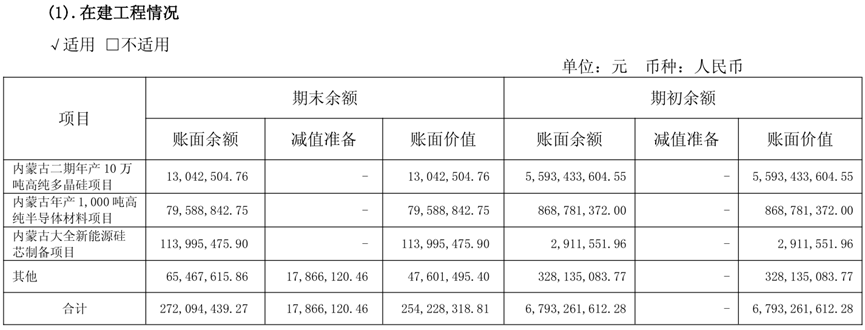在所有硅料企业中,大全能源的产能扩张是极度克制和自律的。2024年初,公司在建工程有67.93亿,到了期末,则只有2.72亿。原因是内蒙古二期10万吨高纯多晶硅项目在2024年建成并转为固定资产。即使如此,谨慎的大全能源仍对在这2.72亿的在建工程做了1787万元的减值准备。