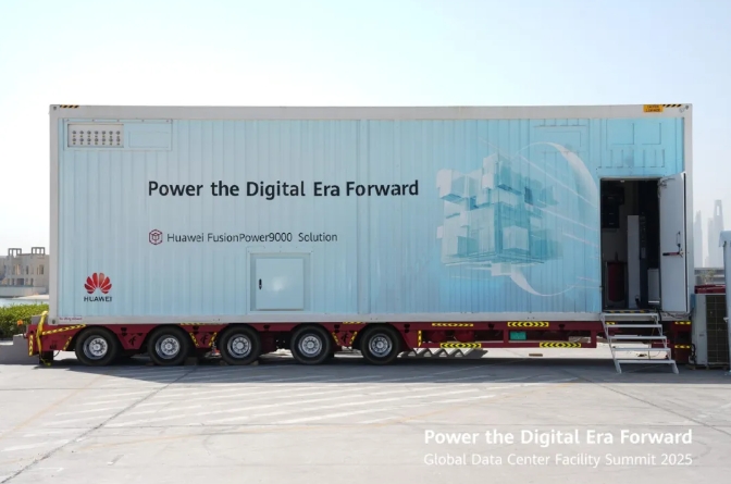 华为电力模块FusionPower9000展车再次亮相,一个超高防护40尺箱体,单箱容量支持2.4MW,通过定制化扩容,最高达3.2MW,满足智算时代更高功率密度要求。
