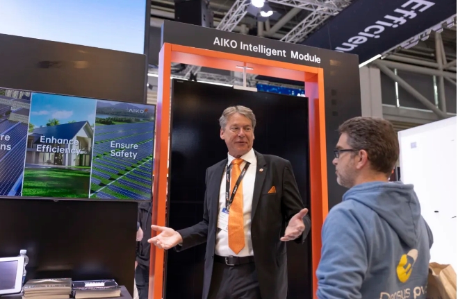 5月7日,2025年德国慕尼黑光伏储能展览会于德国慕尼黑新国际展览中心盛大开幕。以高效ABC引领光伏组件效率提升的爱旭股份,此次参会发布了全新智能组件“领航者”,赋予高效ABC组件智慧属性,为光伏行业注入全新活力。展会现场,爱旭展台凭借这一颠覆性新成果吸引全场瞩目。