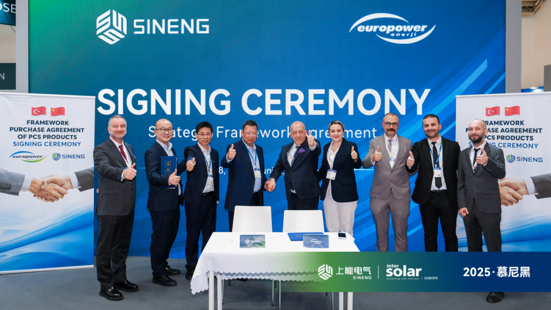 近日,在2025 Intersolar Europe展会现场,上能电气股份有限公司(以下简称“上能电气”)与土耳其知名新能源公司Europower Enerji(以下简称“Europower”)正式签署框架合作协议,进一步加速对土耳其及欧亚储能市场的开拓与布局。