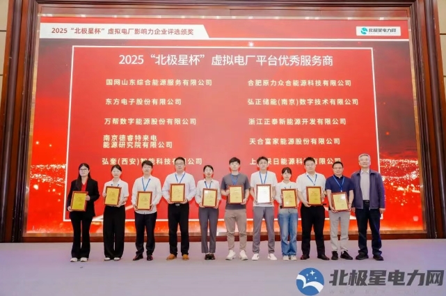 会议同期举办的2025年度“北极星杯”虚拟电厂影响力企业颁奖典礼上,弘正储能(南京)数字技术有限公司凭借在虚拟电厂聚合服务、数字化平台建设及市场化运营领域的技术实力,获评“虚拟电厂平台优秀服务商”。这一荣誉既是对公司研发创新实力的认可,也印证了公司在能源数字化转型中的领先地位。