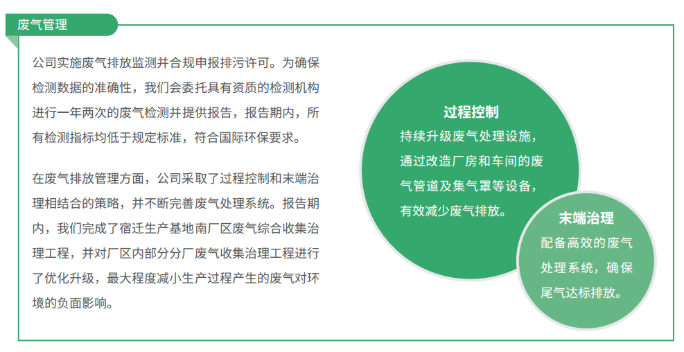 珠海港旗下秀强股份重视清洁生产,2024年开展了污染物环保检测,覆盖公司工厂的污水、废气排口取样监测点以及厂区噪声监测点。其中废气管理方面,秀强股份委托具有资质的检测机构进行一年两次的废气检测并提供报告,2024年所有检测指标均低于规定标准,符合环保要求。废水管理方面,秀强股份配备了两套与国发、省、市环保平台联网的污水在线监测系统,确保废水合规排放。