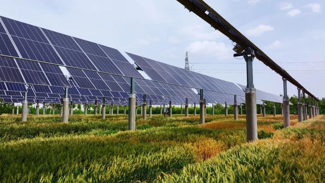 据专家介绍,除了跟踪支架技术的创新,该项目还采用了“光伏组件+透散射板间隔组合补光”等系列创新性技术,使光伏电站更有利于农作物生长,开创光伏发电+粮食稳产”共赢的新范式。经过两个完整种植年的实验,天合跟踪智能跟踪支架叠加业主多项创新技术助力小麦增产、增质效果显著,为农民增收、粮食增产、生态改善提供了绿色发展新模式。