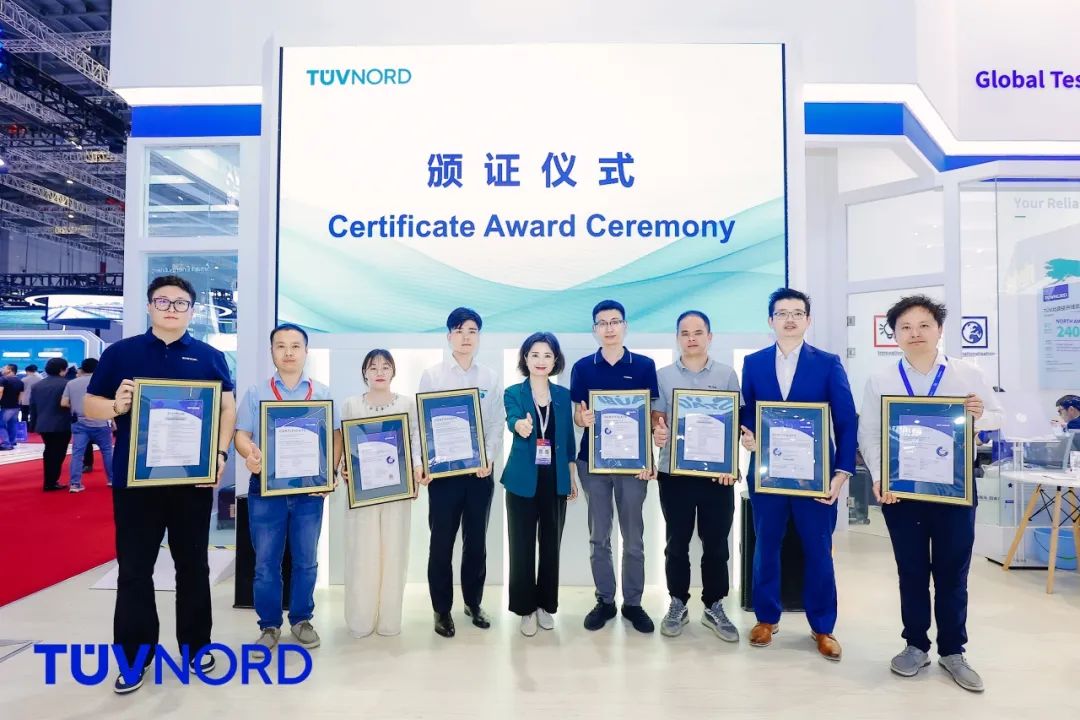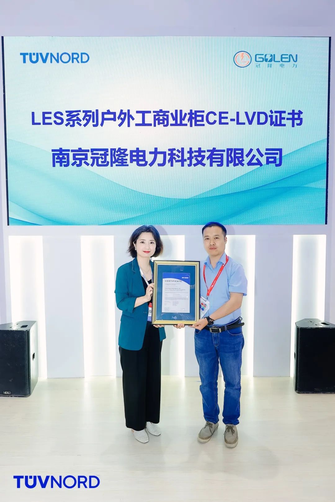 6月12日,TÜV NORD北德在展会现场举行的认证证书颁发仪式上,冠隆电力自主研发生产的135kW系列PCS和241kWh系列储能系统喜获欧标认证证书,这一时刻吸引了众多行业同仁的目光,成为展会现场的焦点。