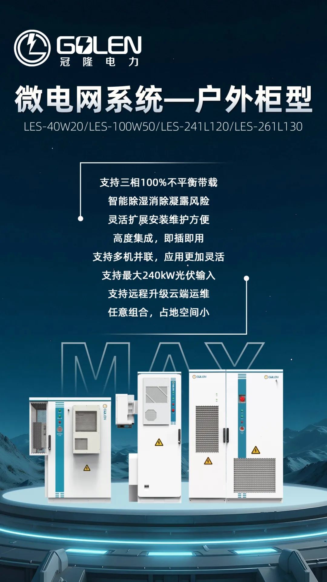 241kWh系列储能系统,将PCS、PACK、BMS、消防系统、配电、热管理系统、EMS等关键部件高度集成于一体,实现产品的一体化交付。在此基础上,冠隆电力进一步拓展,将光伏发电、储能与柴油发电有机结合,形成独特的“光储柴”微电网系统解决方案。这种将“光储柴”和离并网切换功能融为一体的集成化解决方案提供了高度自主且可靠的供电保障,在本次展会上倍受关注。