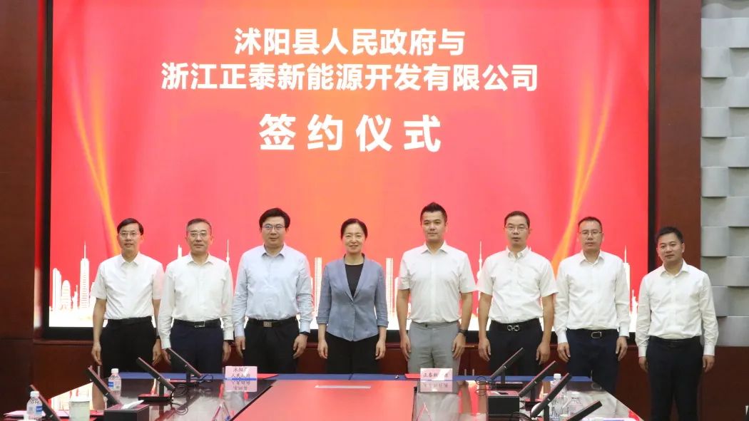 沭阳县委常委、常务副县长王明新与正泰新能源总裁助理黄启银代表双方签约。根据协议,正泰新能源将依据地方政府规划和资源配置,投资建设新能源风光电站、风光储应用示范基地等。