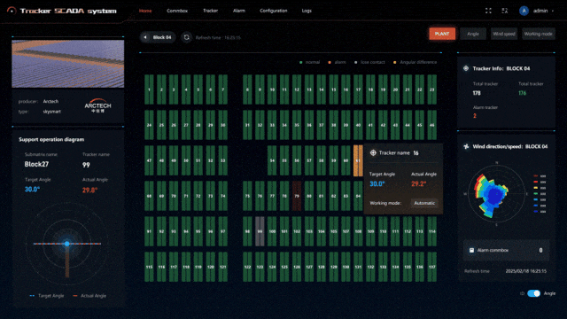 天际II Pro搭载自研AI-3控制系统,智能控制提升峰谷电价机制下峰时段发电增益约60%,同时通过云层策略、逆跟踪策略等叠加至多8%发增益;联合新一代SCADA运维平台可远程、无线、实时监测环境参数和设备运行状态,提高资产管理效率。