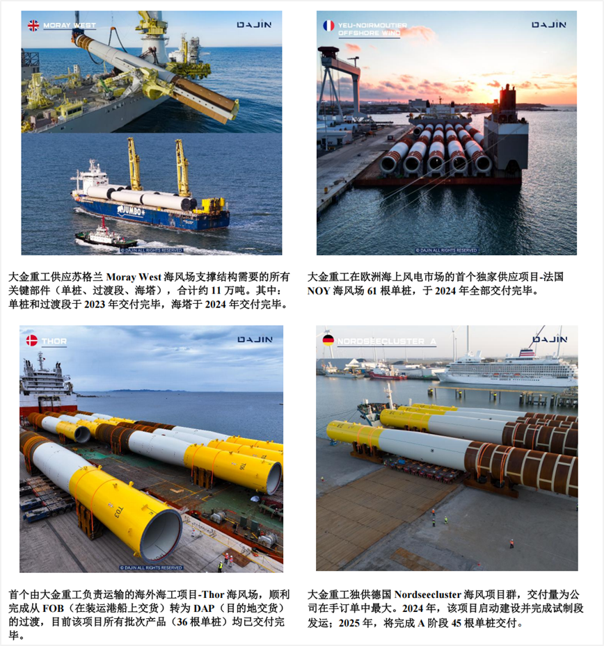根据公司2024年报,2024 年,大金重工“海外海上”战略实施进入“全面提质期”,成功实现从国内主流风电装备企业向全球一流海工企业的有力转型。