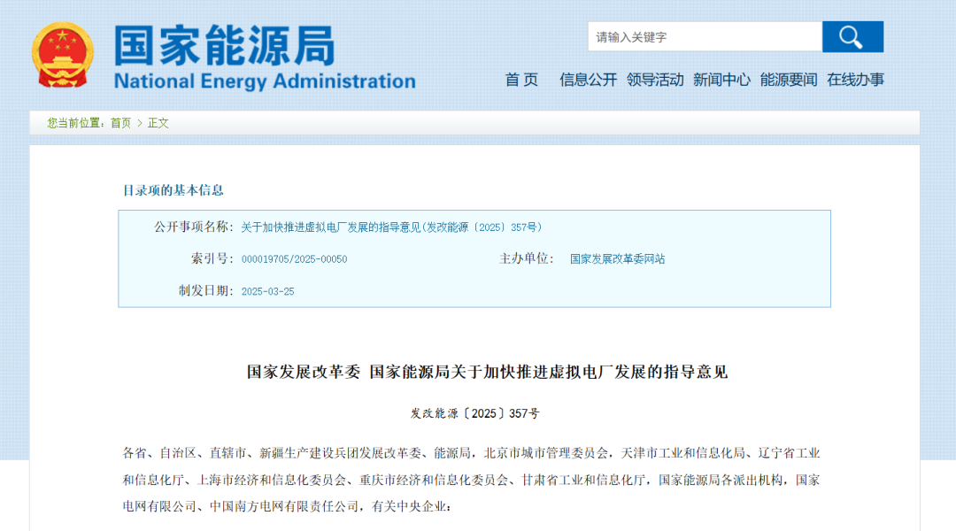 2025年4月,国家发改委、能源局联合发布《关于加快推进虚拟电厂发展的指导意见》,首次明确虚拟电厂定义:聚合分布式电源、可调节负荷、储能等分散资源,协同参与电力系统优化和市场交易的新型经营主体。